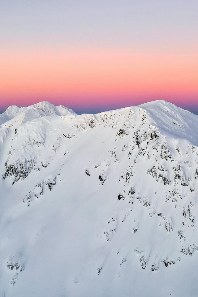 Wallpaper Beautiful snow-capped mountain peaks against a pink sky