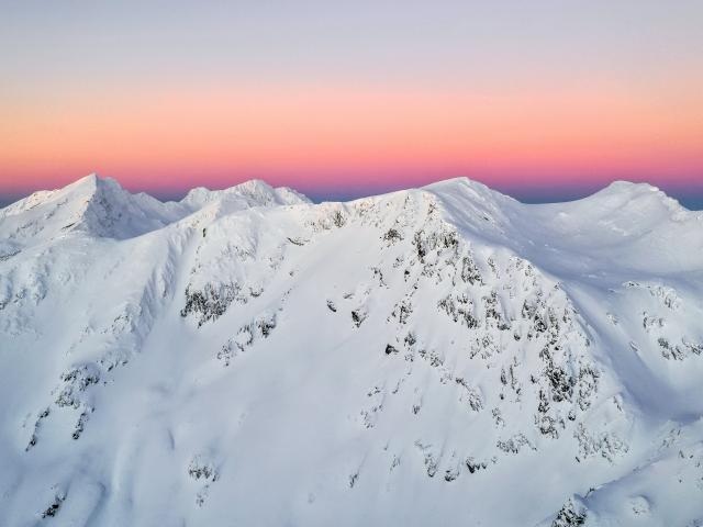 Wallpaper Beautiful snow-capped mountain peaks against a pink sky