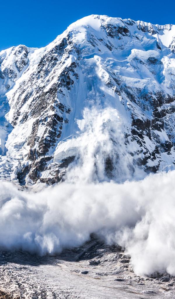 Wallpaper A large white avalanche descends from the snowy Alps
