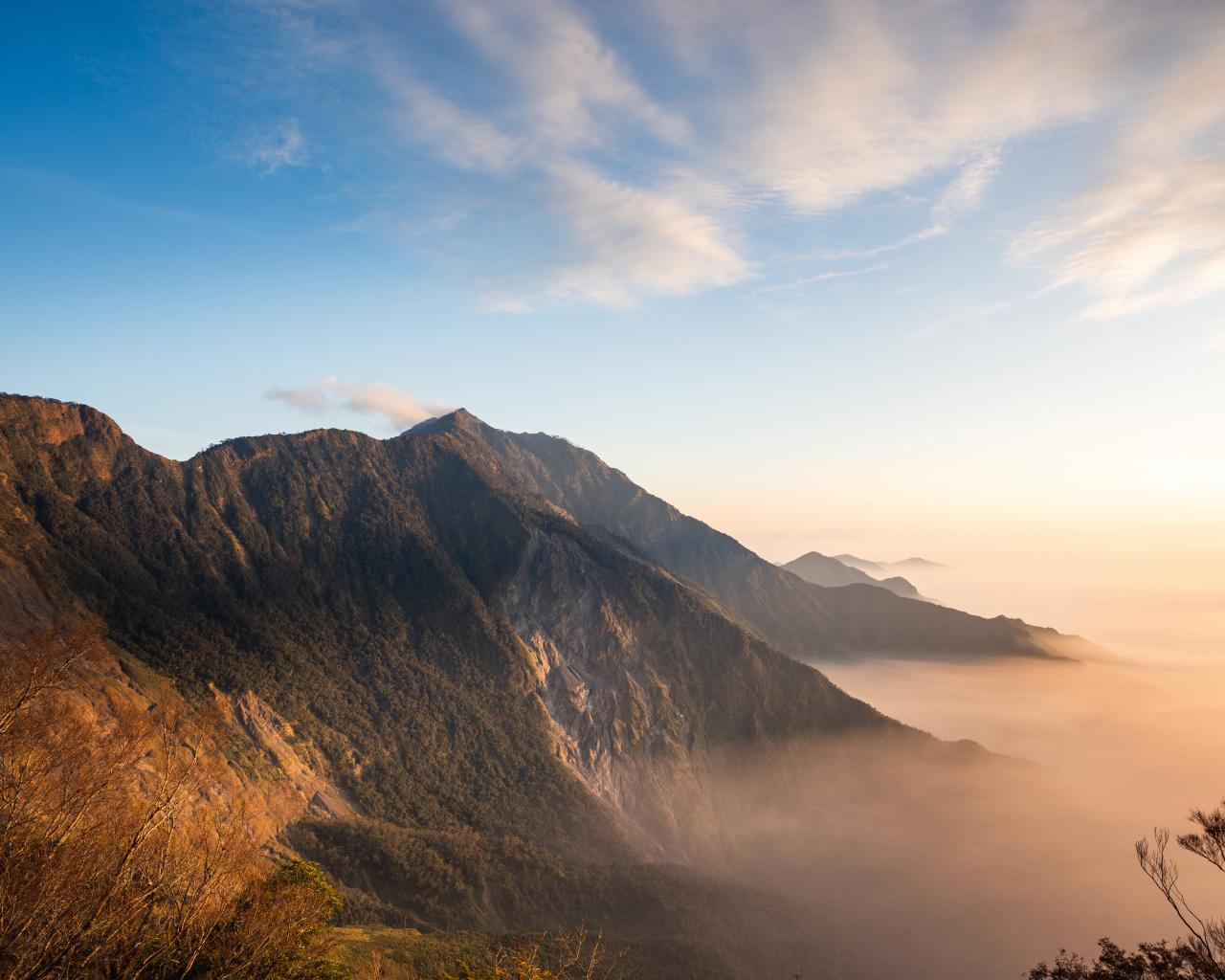 Wallpaper Beautiful view of foggy mountains under blue sky