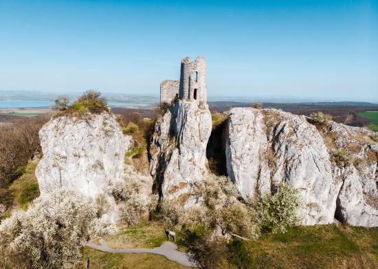 Wallpaper The ruins of a temple on a rock under a blue sky