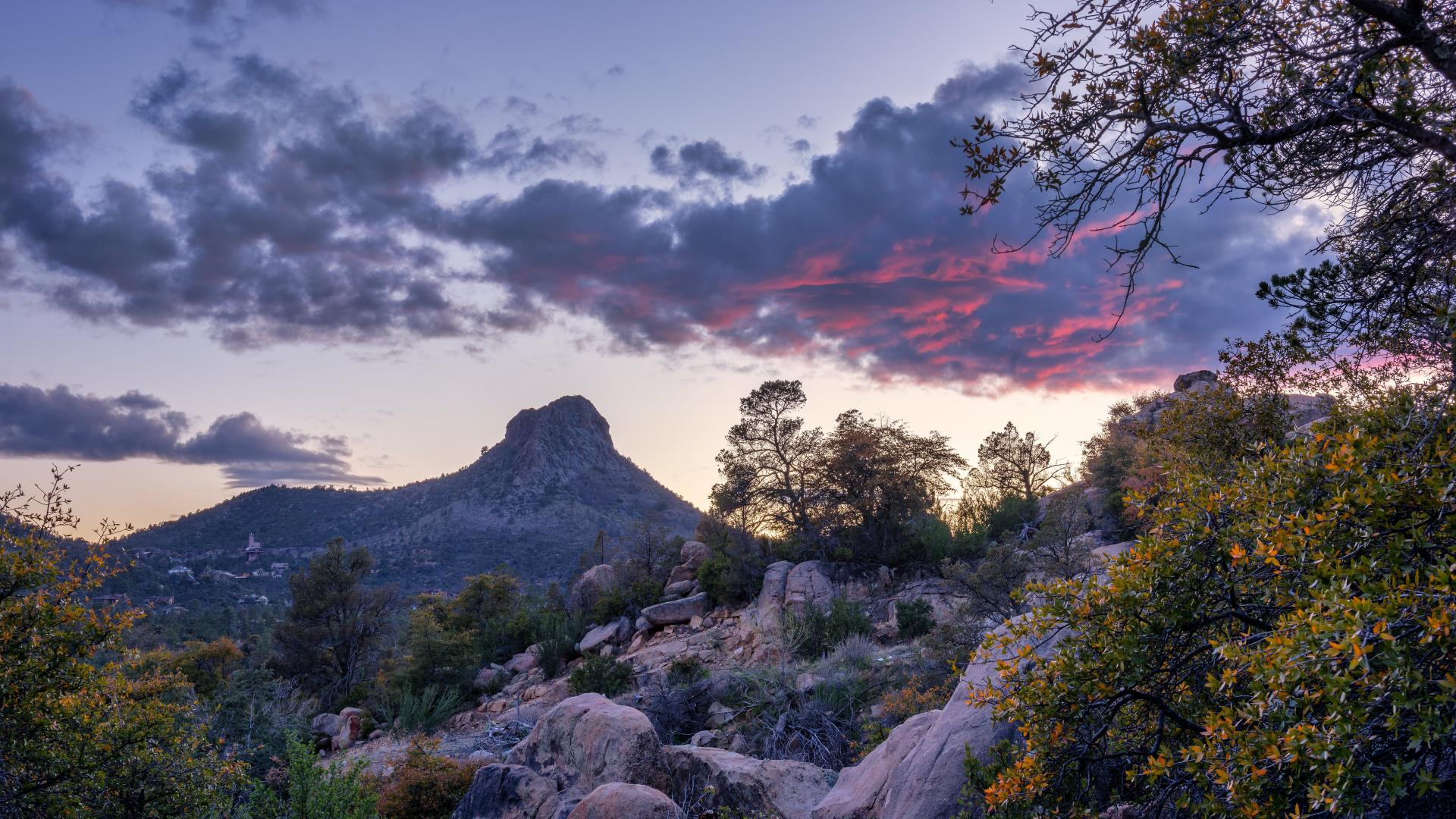 Wallpaper Rocky mountains under beautiful evening sky