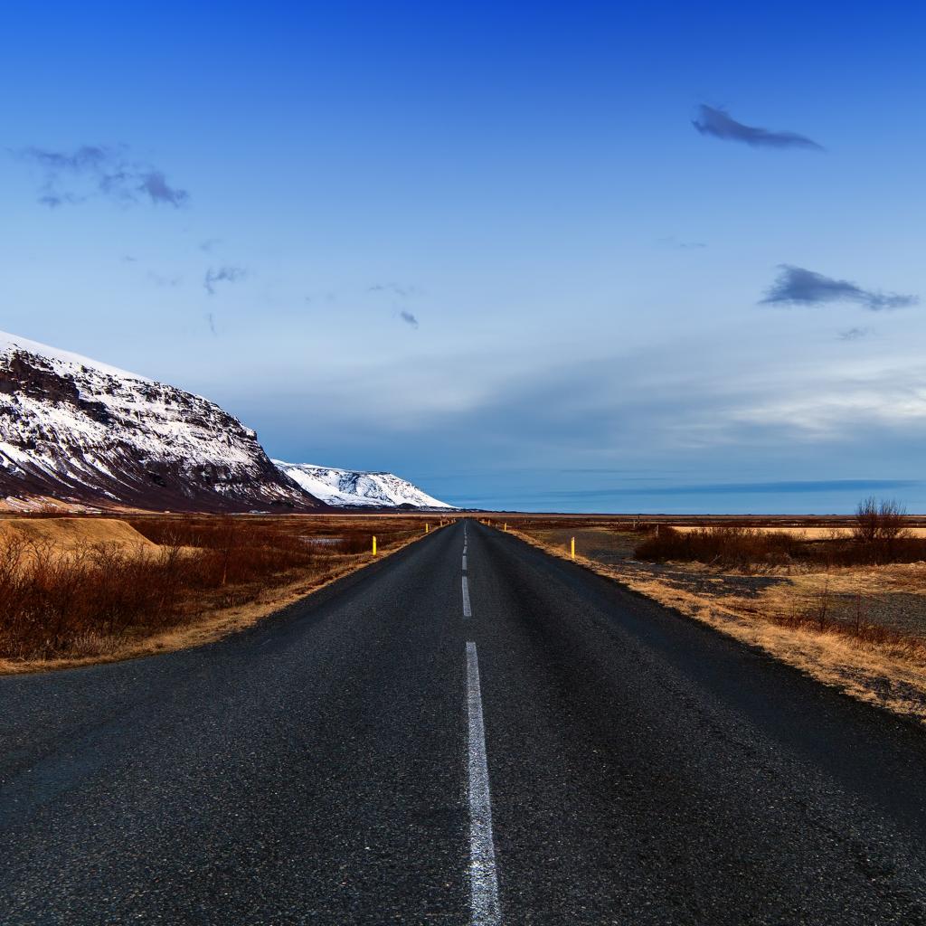 Wallpaper Snowy mountains by the road