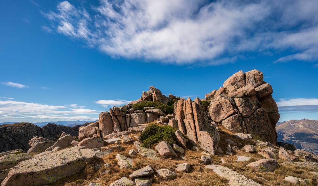 Wallpaper Stone mountains under blue sky with white clouds