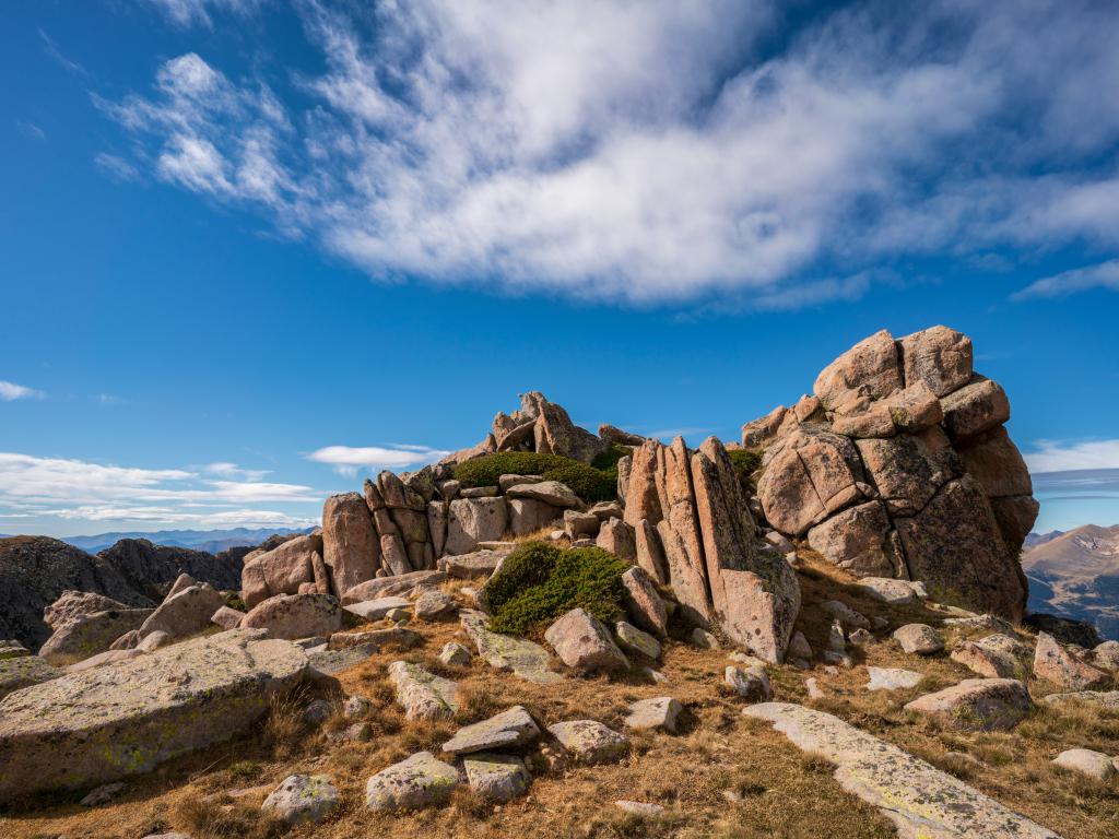 Wallpaper Stone mountains under blue sky with white clouds
