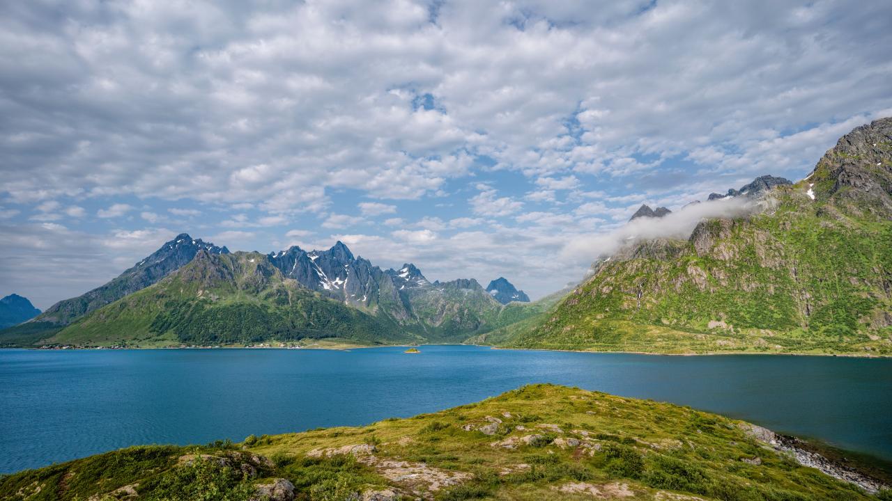 Wallpaper Mountains under white clouds, Lofoten Islands
