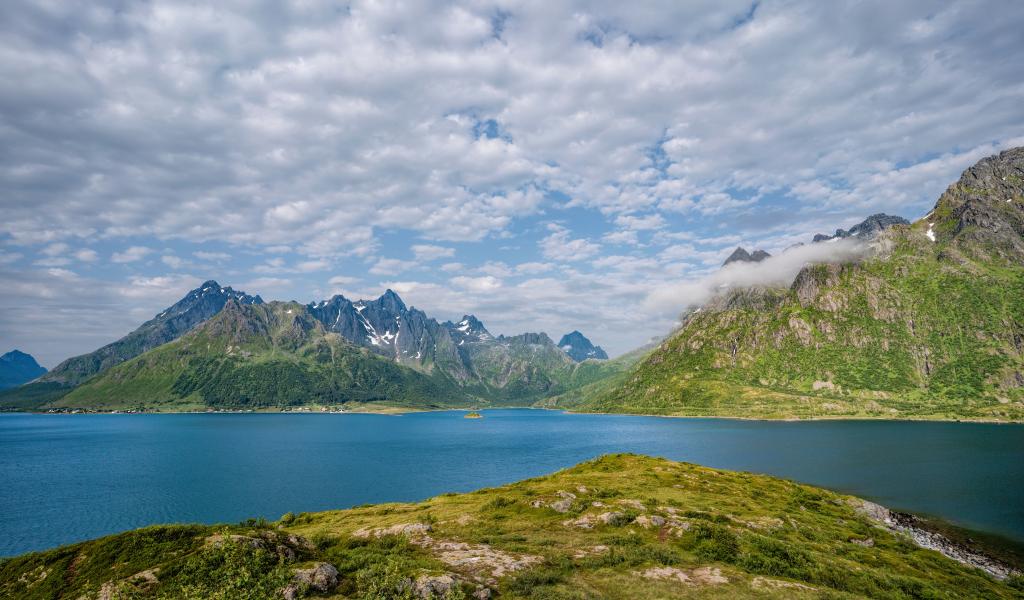 Wallpaper Mountains under white clouds, Lofoten Islands