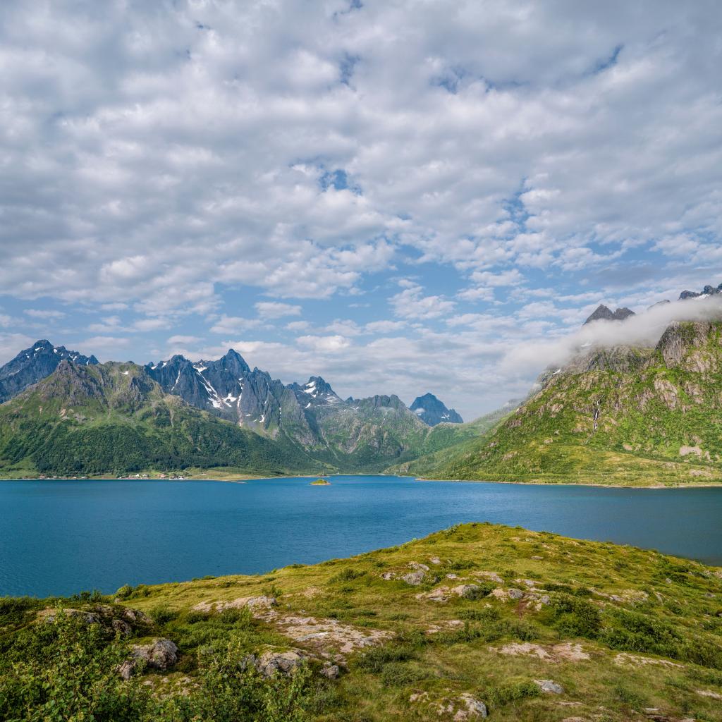 Wallpaper Mountains under white clouds, Lofoten Islands