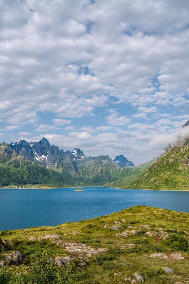 Wallpaper Mountains under white clouds, Lofoten Islands