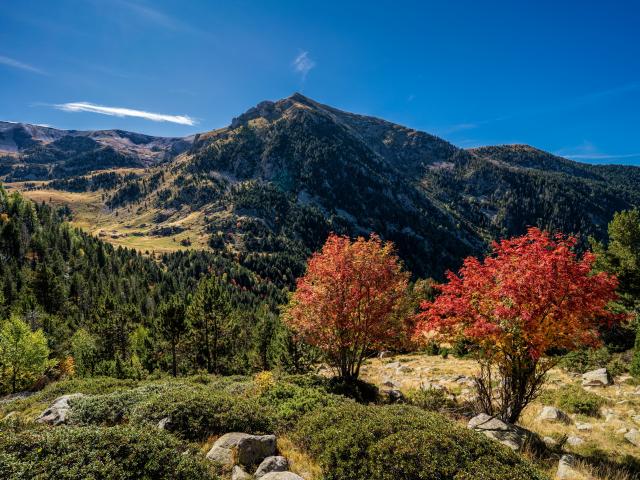 Wallpaper Beautiful view of coniferous forest and mountain lake under blue sky