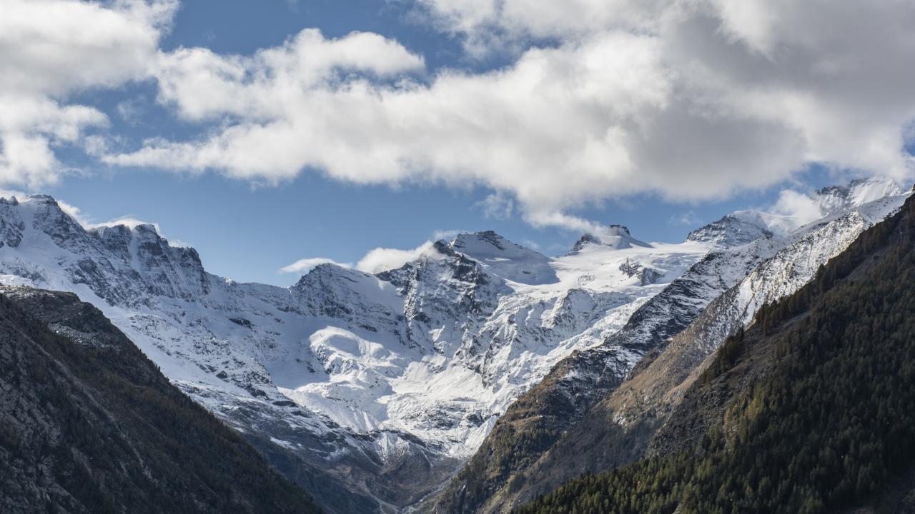 Wallpaper Snow capped mountains under blue sky with white clouds