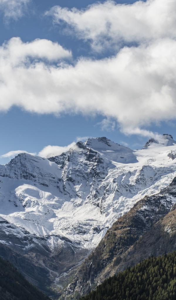 Wallpaper Snow capped mountains under blue sky with white clouds