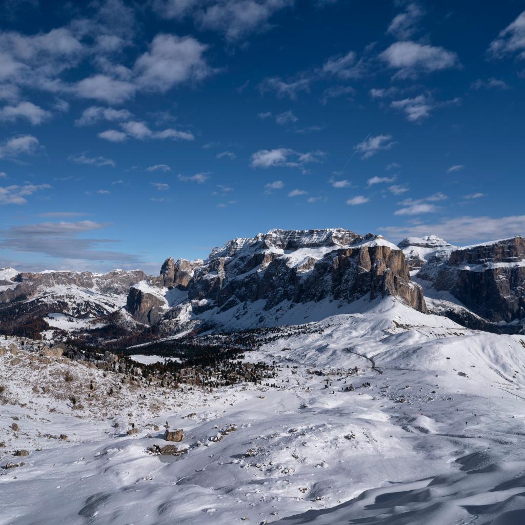 Wallpaper Large stone mountains covered with snow