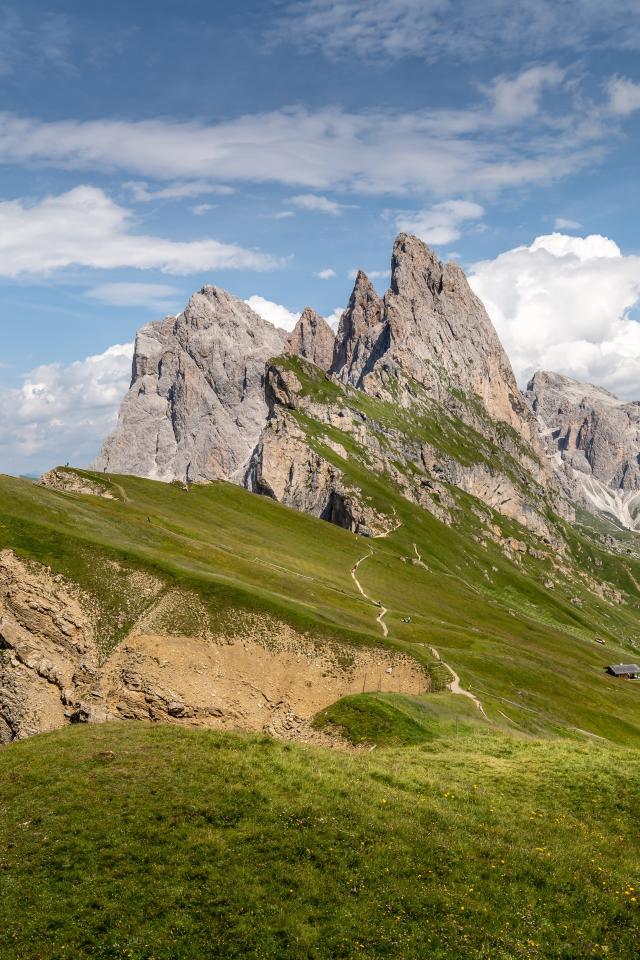 Wallpaper Beautiful sharp mountain peaks under blue sky