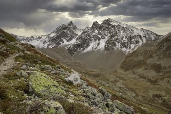 Wallpaper Dry river in the mountains under a stormy sky