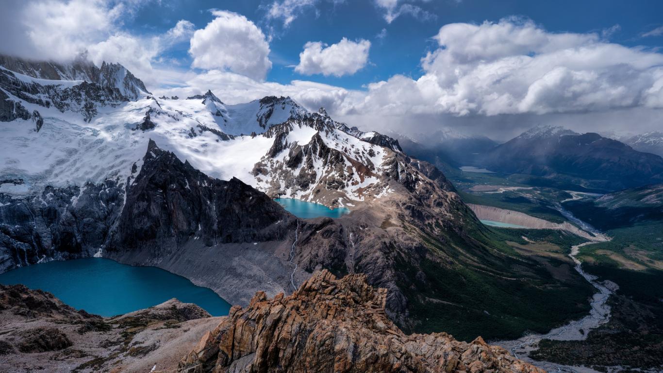 Wallpaper Blue lakes in snowy mountains