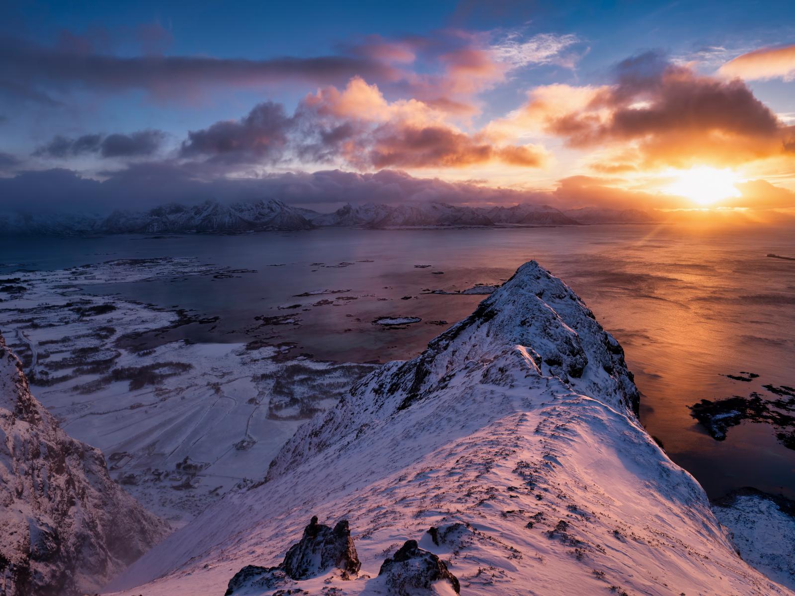Wallpaper Snow covered mountains at sunset