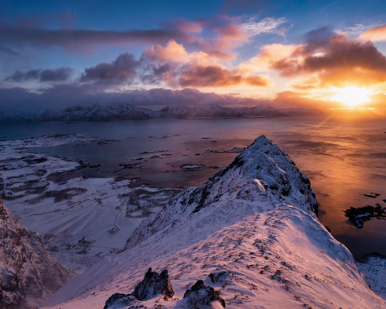 Wallpaper Snow covered mountains at sunset