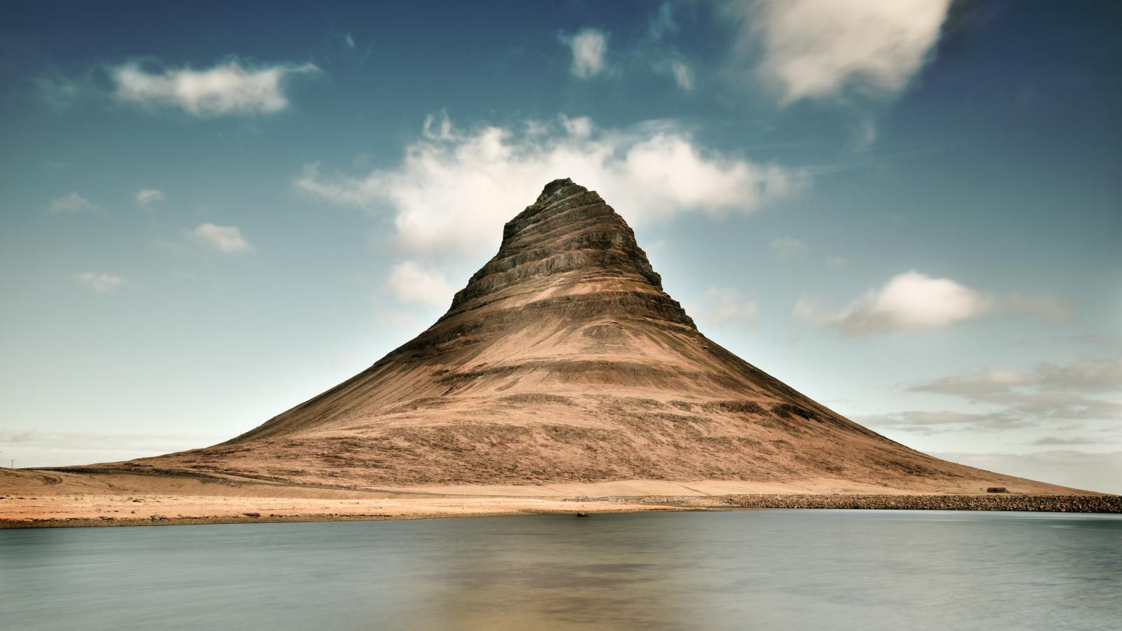 Wallpaper View of Mount Kirkjufell by the lake, Iceland
