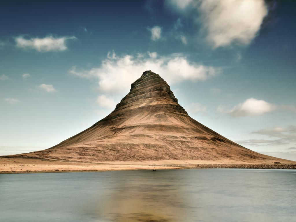 Wallpaper View of Mount Kirkjufell by the lake, Iceland