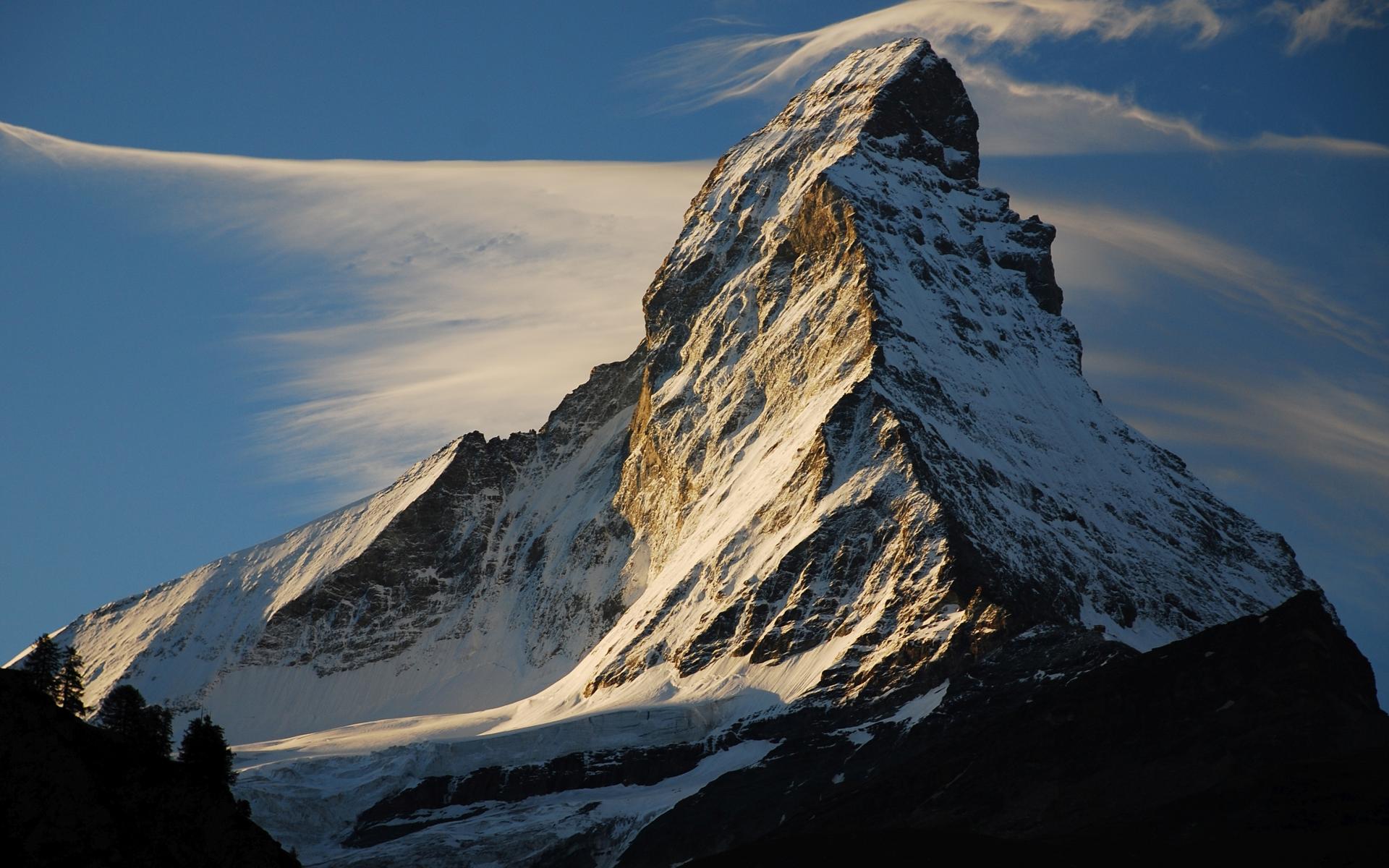 Wallpaper Matterhorn peak in the snow against the sky, Switzerland