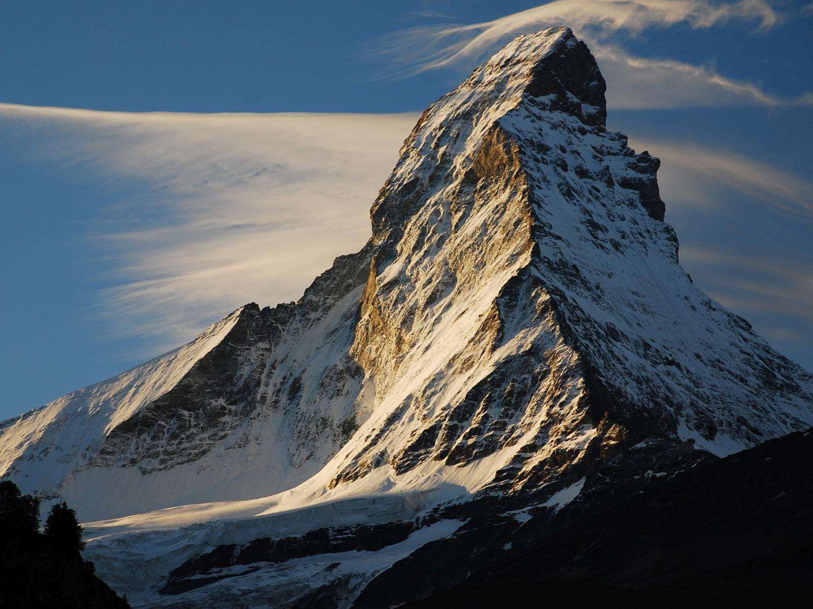 Wallpaper Matterhorn peak in the snow against the sky, Switzerland