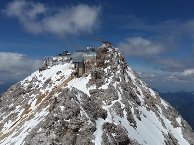 Wallpaper Zugspitze peak in snow under blue sky