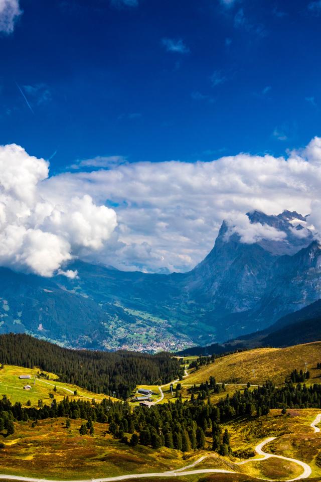 Wallpaper Beautiful mountain view under thick white clouds