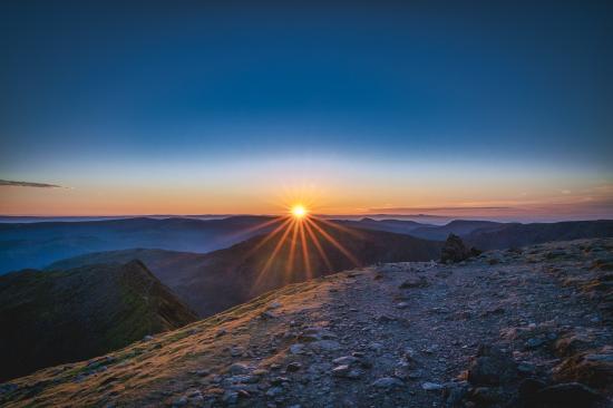 Wallpaper Dawn of the bright sun in the blue sky over the mountains