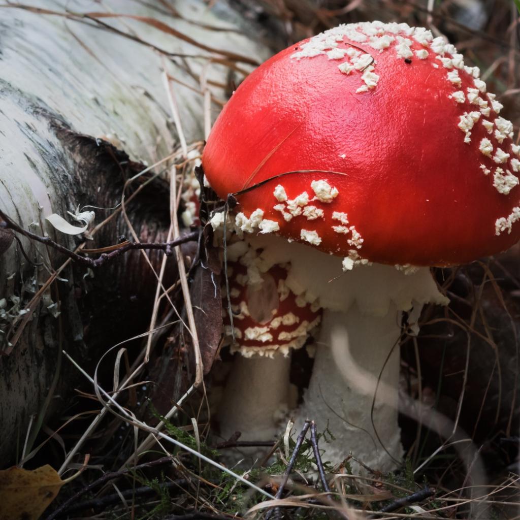 Wallpaper Beautiful fly agaric mushroom with a red hat in a dry birch