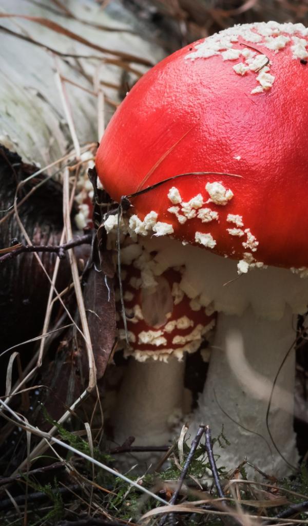 Wallpaper Beautiful fly agaric mushroom with a red hat in a dry birch