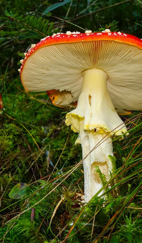 Wallpaper Red fly agaric in green wet grass