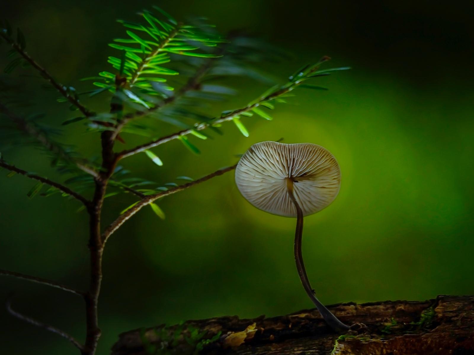 Wallpaper Little toadstool mushroom grows on a dry tree