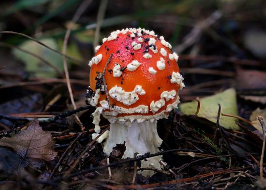 Wallpaper Beautiful fly agaric mushroom with a red hat in a dry birch