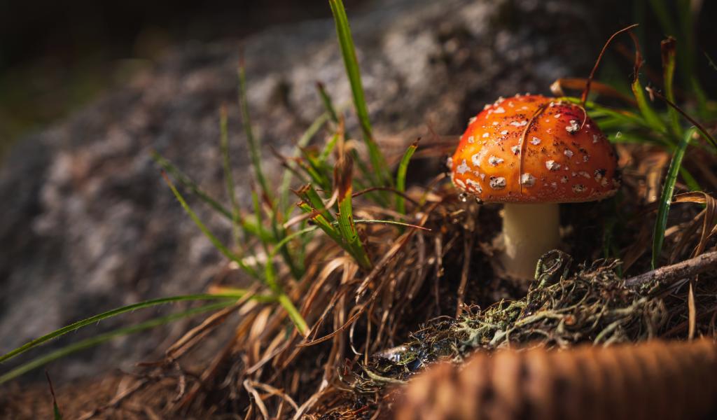 Wallpaper Red fly agaric in the grass in the forest