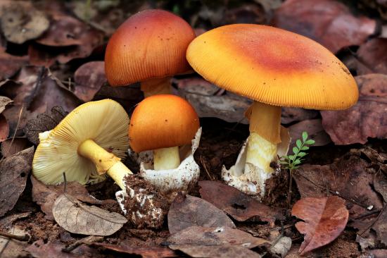 Wallpaper Autumn mushrooms grow in fallen leaves