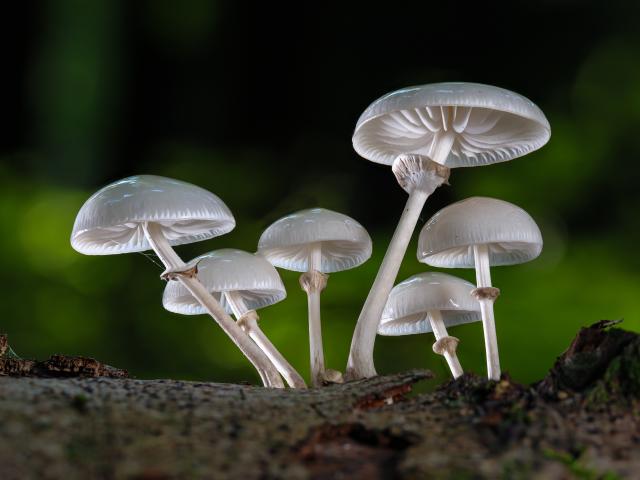 Wallpaper Toadstool mushrooms grow on a tree covered with moss