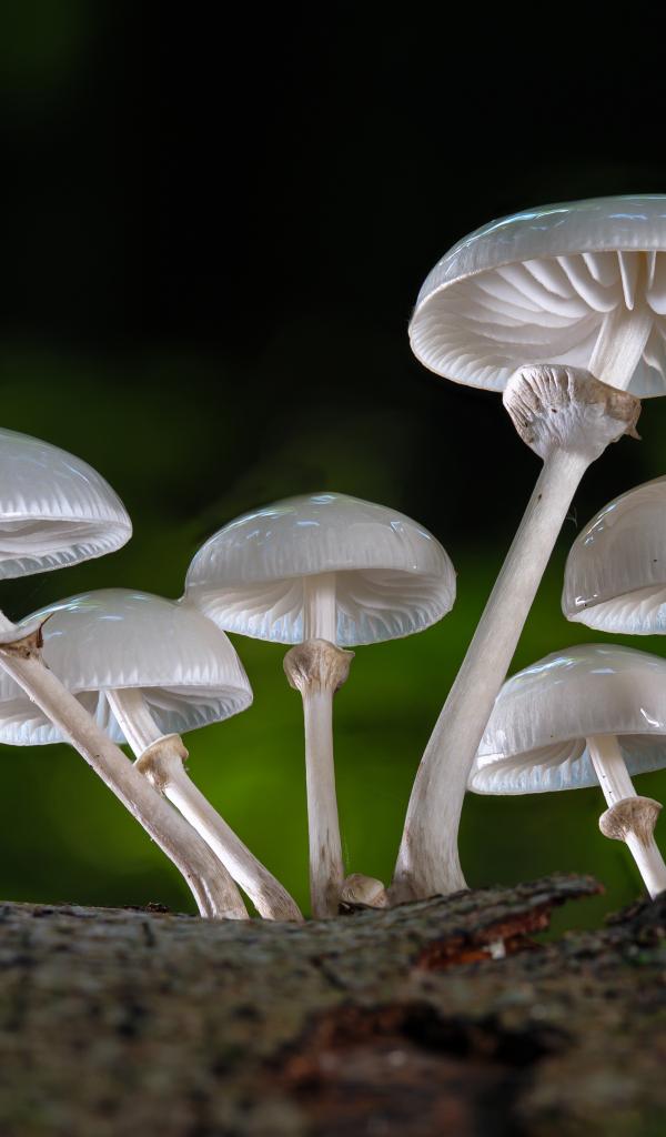 Wallpaper Toadstool mushrooms grow on a tree covered with moss
