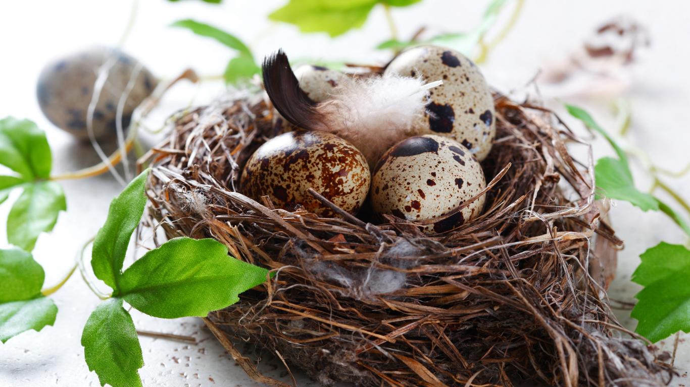 Wallpaper Painted eggs in a nest with a sprig of willow on a wooden table