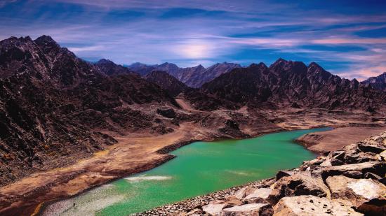 Wallpaper River between high mountains under blue sky
