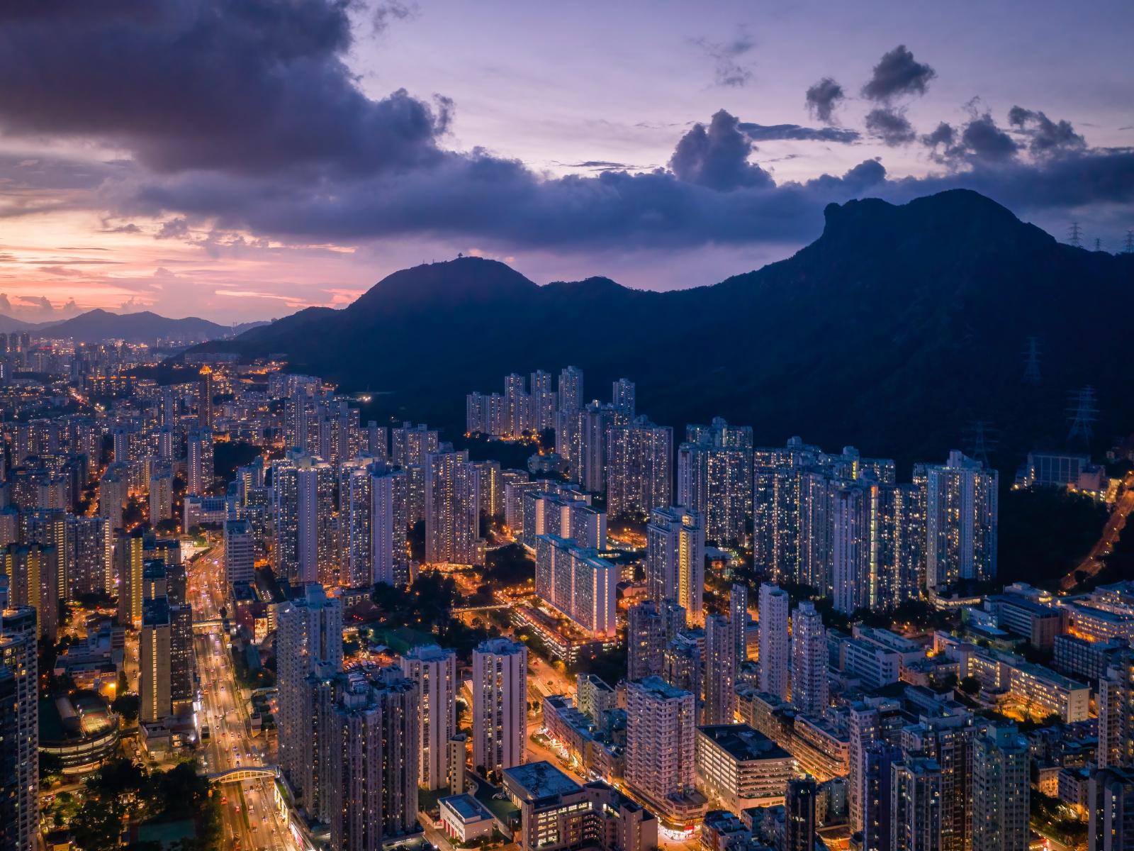Wallpaper Nice view of night skyscrapers at the foot of the mountain