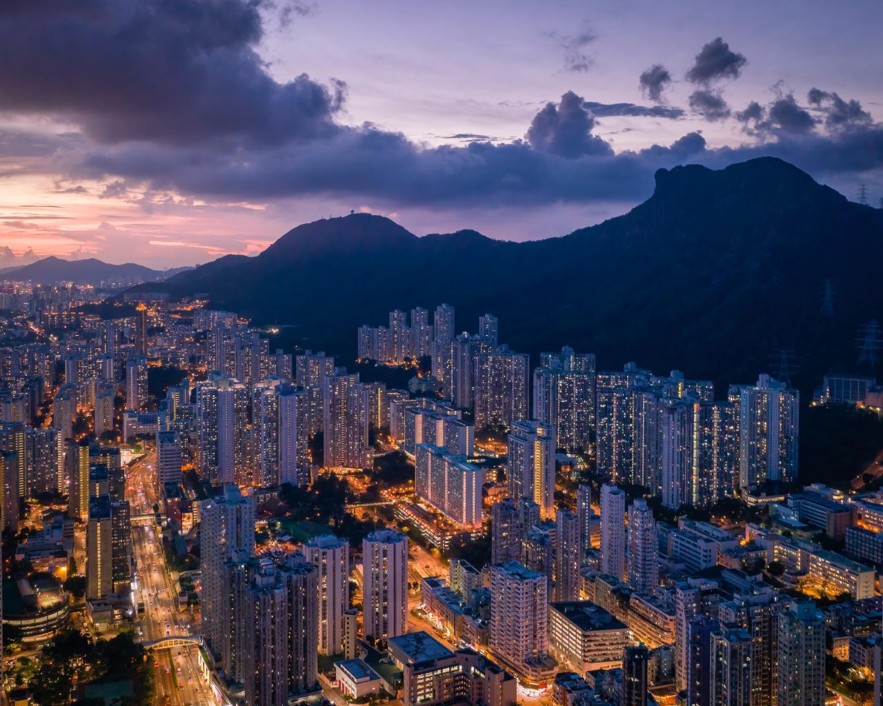Wallpaper Nice view of night skyscrapers at the foot of the mountain