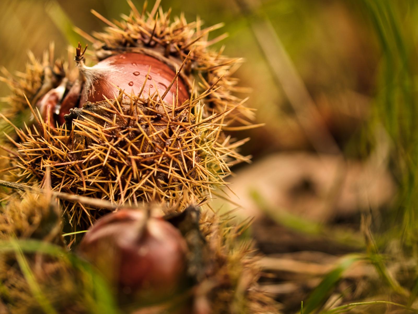 Wallpaper Thorny hazelnuts lie on the ground