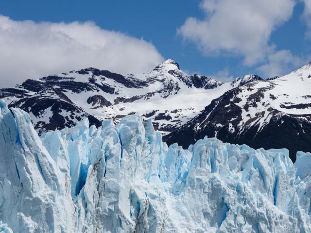 Wallpaper Blue glacier on the background of snow-capped mountains