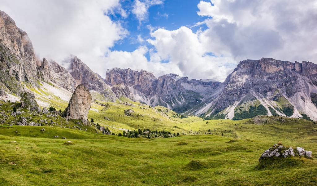 Wallpaper Nice view of the green hills at the foot of the mountains