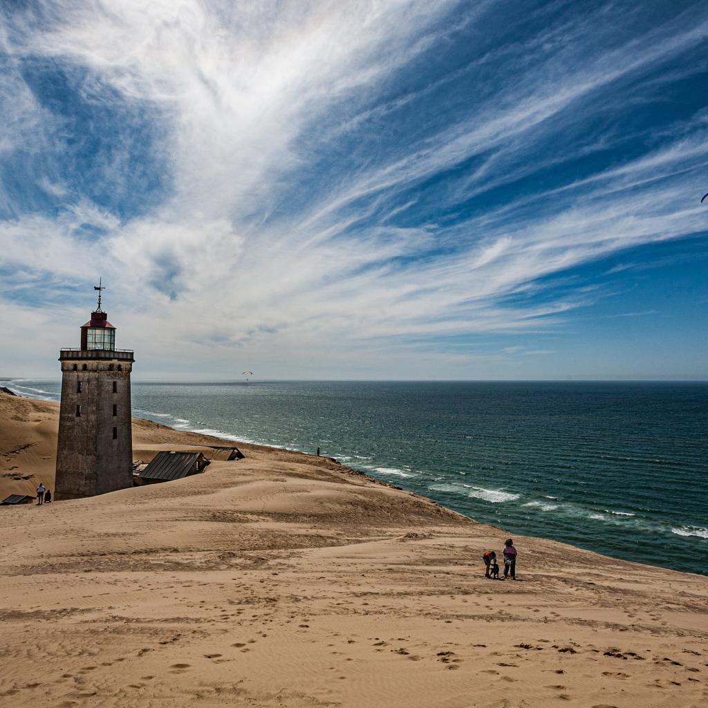 Wallpaper Lighthouse on the sand by the sea under the blue sky