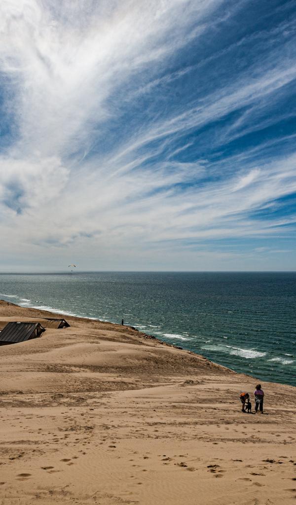Wallpaper Lighthouse on the sand by the sea under the blue sky