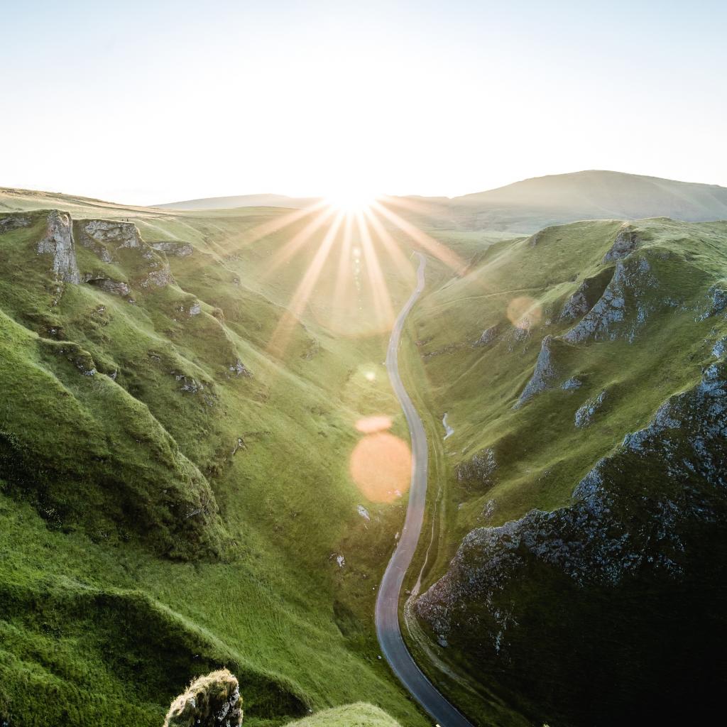 Wallpaper The road between the lush mountains in the sun