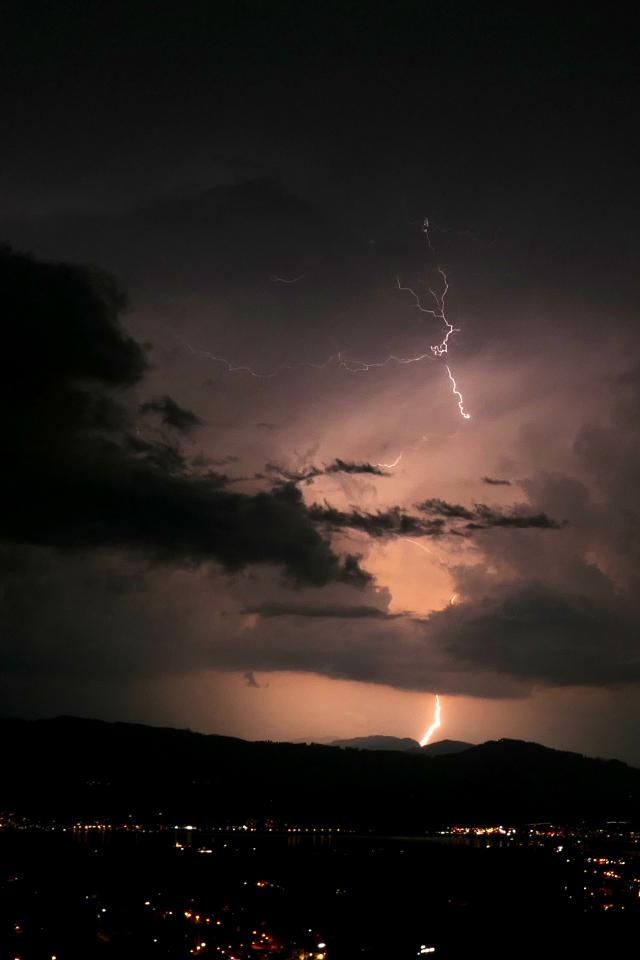 Wallpaper Stormy sky with black clouds with lightning over the sea