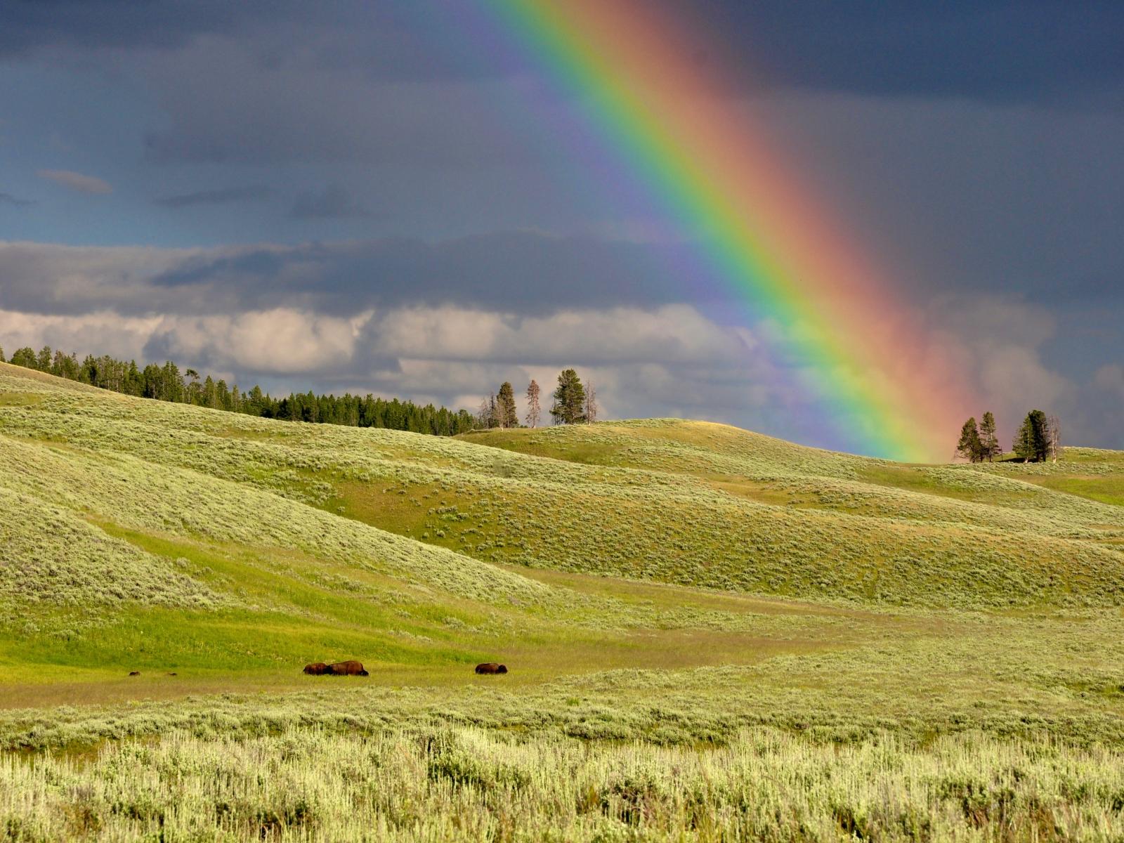Wallpaper Multicolored rainbow over green meadow